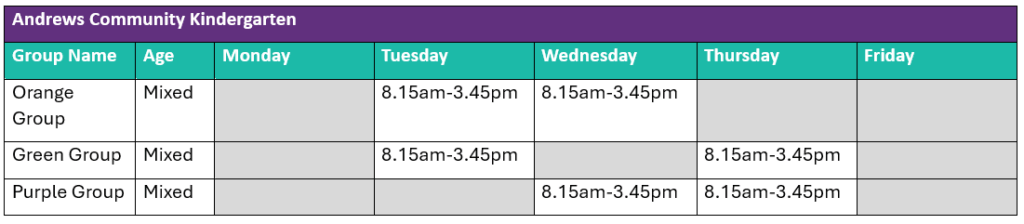 Welcome to Andrews Community Kindergarten, a place where children flourish in a fun and nurturing setting.