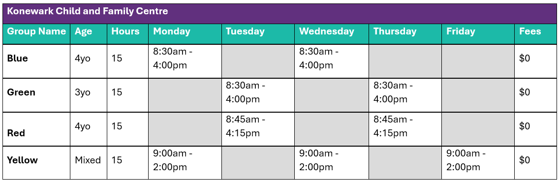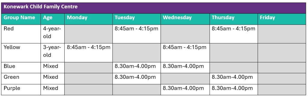Located in the brand-new Konewark Child and Family Centre, Konewark Kindergarten is a beautiful and modern service.