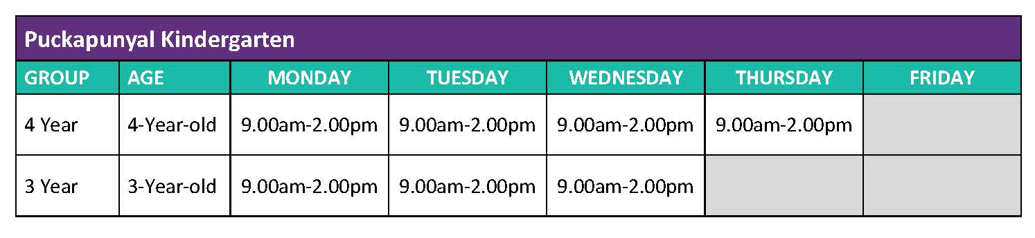Phone: (03) 5793 1888 Mobile: 0419 373 694 Email: Puckapunyalkinder@onetree.org.au