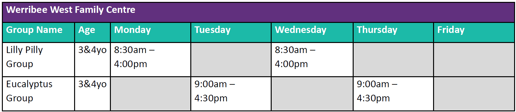 At Werribee West Family Centre, we have two dedicated kindergarten rooms led by passionate and experienced educators. Located in a purpose-built community centre, our service has been designed with children and families at heart.